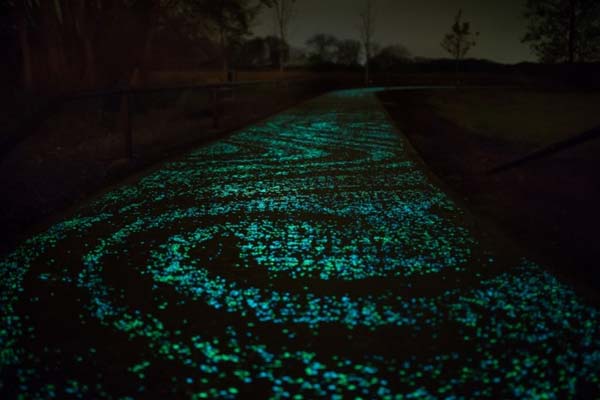 Велосипедная дорожка по мотивам картины Ван Гога «Звездная ночь». Studio Roosegarde почтила память великого художника созданием новой трассы. При ее прокладке были использованы небольшие камушки, которые покрыли светящейся в темноте краской. Днем камушки впитывают ультрафиолет, а ночью красиво светятся. А сама дорожка стала более безопасной для любителей ночных прогулок.