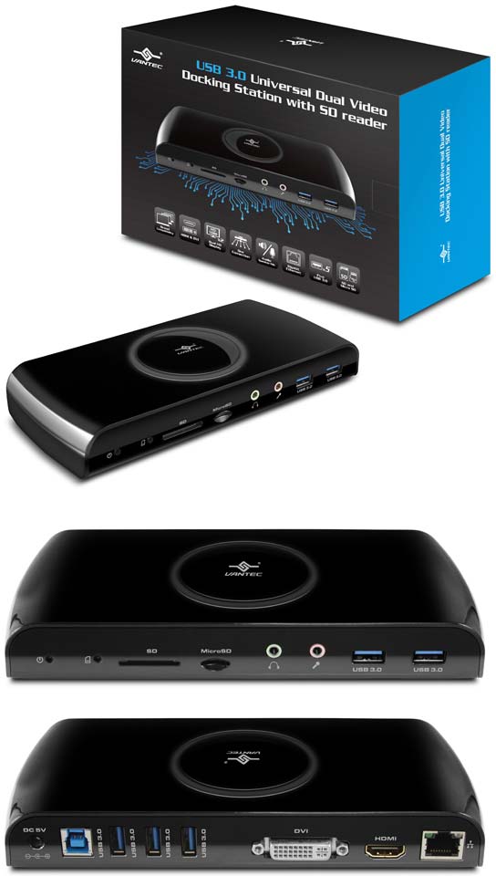 Аппарат называется DSH-300U3, маркетинговое название более длинное - USB 3.0 Universal Dual Video Docking Station with SD reader, поэтому я буду использовать в описании наименование модели. Суть изделия проста - через одно единственное подключение по интерфейсу USB 3.0 давать доступ к широкому функционалу, т.к. девайс предназначен для ноутбуков, польза от него будет велика.