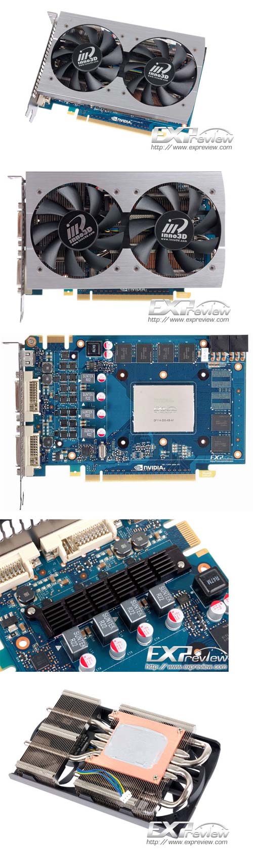 Inno3D оснастила свой продукт двухслотовой системой охлаждения собственного производства, состоящей из кожуха с закреплёнными на нём двумя 80мм вентиляторами, а также алюминиевого радиатора с четырьмя теплотрубками. По идее, если он не шумный, то может быть вполне приличным.