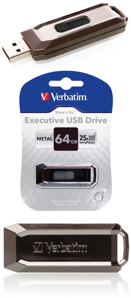Очень красивую флешку представила недавно компания Verbatim. Новая Executive выполнена в металлическом корпусе и обладает приличными скоростными характеристиками.