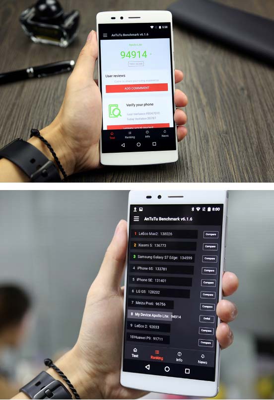Компания Vernee с гордостью объявила о том, что её фаблет Apollo Lite набирает 94914 очков в AnTuTu Benchmark 6.1.6, если кто не верит, то вот фото: