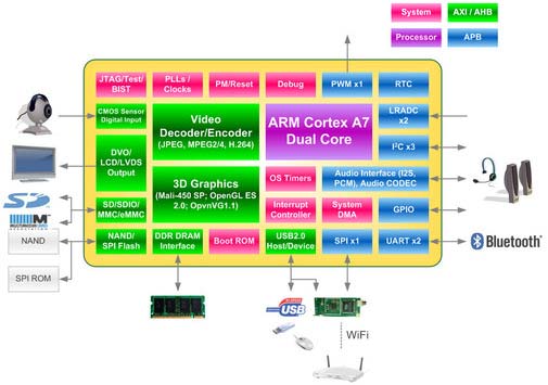 Представленная система-на-чипе/кристалле (SoC) называется WonderMedia PRIZM WM8860 и является продуктом, предназначенным для использования в планшетах, смартфонах, медиаплеерах и прочих устройствах такого рода начального уровня. Сообщается, что аппарат сделан по энергоэффективному 28нм тех.процессу, в SoC используются два ядра Cortex-A7 от ARM, работают которые на тактовой частоте 1.2ГГц.