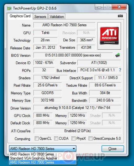 Далее нам показывают скриншоты, что являются доказательством успешного объединения карт разных серий в полноценно функционирующий CrossFireX тандем: