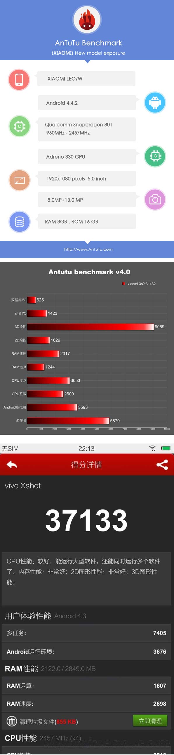 Результаты тестов Vivo Xshot и Xiaomi MI3S в AnTuTu Benchmark