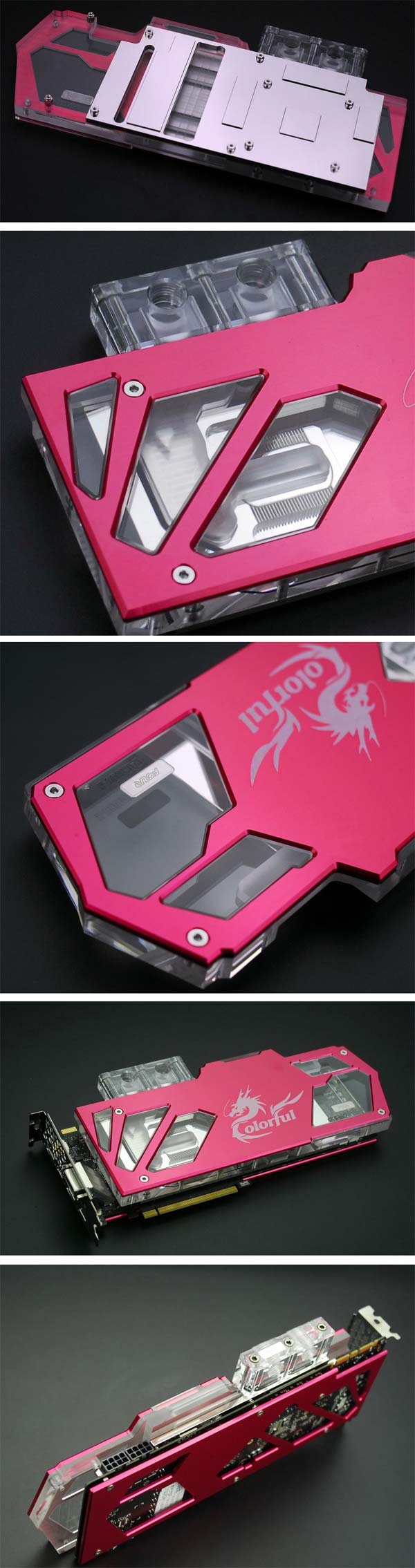 В комплекте с водоблоками идёт показанный выше бэкплейт, он не только украшает видеокарты, но и помогает избежать повреждений (деформации карты и последующего за ней образования микро-трещин). Водоблок стоит 139 долларов США, купить его можно в Китае.