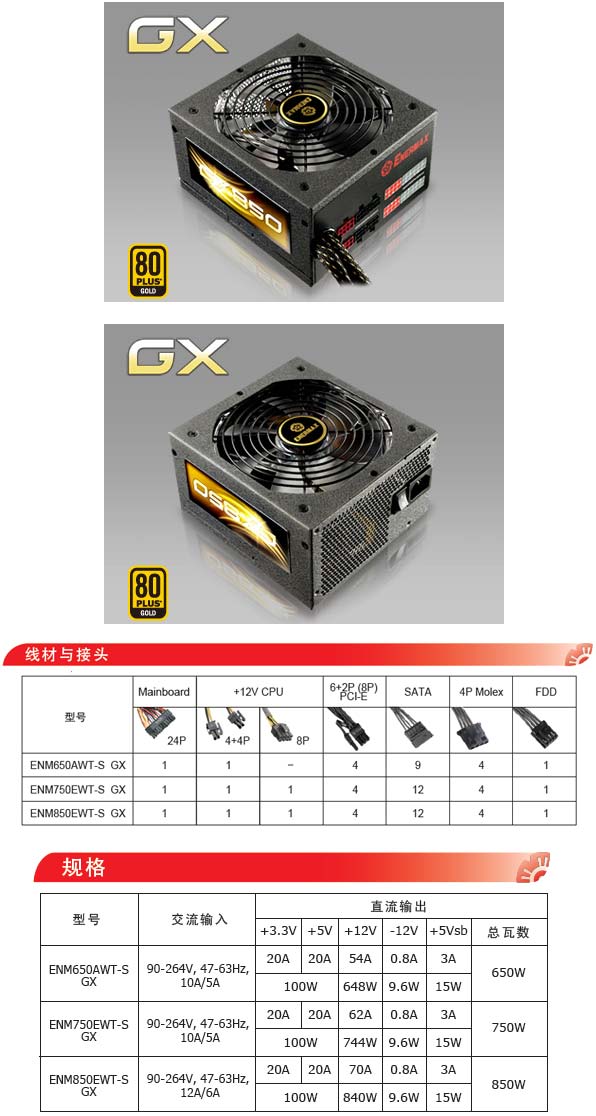 На прошлой неделе я публиковал некоторые данные по блоку питания Enermax GoldenX 650w, а сейчас стали доступны спецификации ещё двух новинок этой серии.