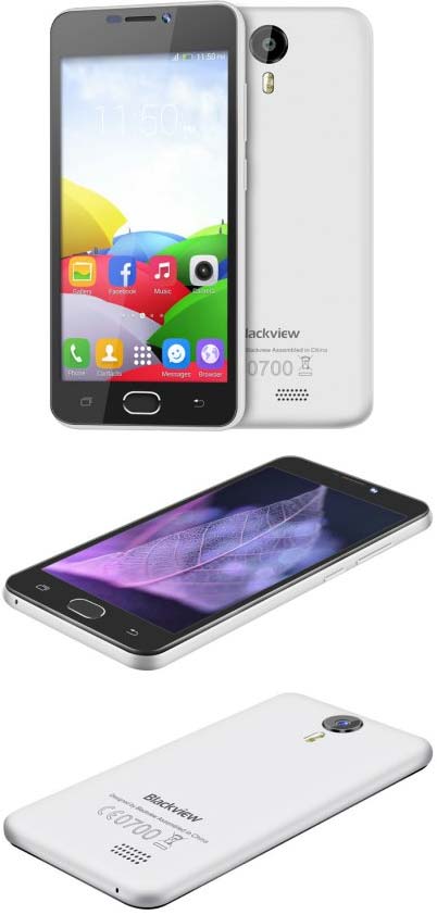 Продукт Blackview поддерживает 802.11a/b/g/n WiFi, GPS и Bluetooth 4.0, работает в сетях 2G и 3G. Тыловая камера имеет 5МП сенсор и LED вспышку, фронтальная - 2МП сенсор. На корпусе смартфона можно найти порт Micro USB и 3.5мм аудиовыход. Решение обладает G-сенсором, датчиком приближения, светосенсором и 3-осевым гироскопом, ловит FM радио.