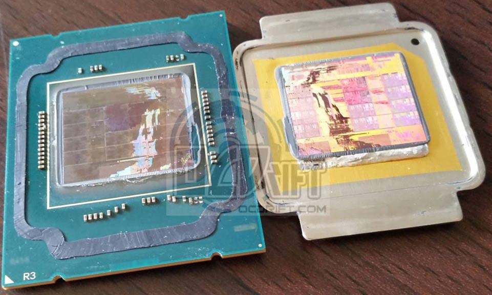 Оказалось, что под крышкой скрываются все двенадцать ядер, но лишь восемь из них активированы. Вполне возможно, что в будущем Intel представит нам 10-и и 12-и ядерные процессоры, хотя на данный момент времени смысла в этом немного, т.к. большинство приложений не использует больше 1-2 ядер. Также, было замечено, что крышка соединена особым сплавом с ядрами процессора, что потенциально может быть хорошо для оверклокинга.