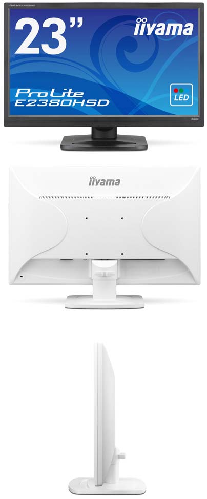 Монитор E2380HSD способен отображать до 16.7 миллионов цветов, максимальная частота обновления экрана - 75Гц, разрешение - 1920x1080. Из видеовходов имеются D-Sub/VGA и DVI-D, также у изделия Iiyama есть 3.5мм коннектор для выдачи звука с ПК через два 2-ваттных динамика.