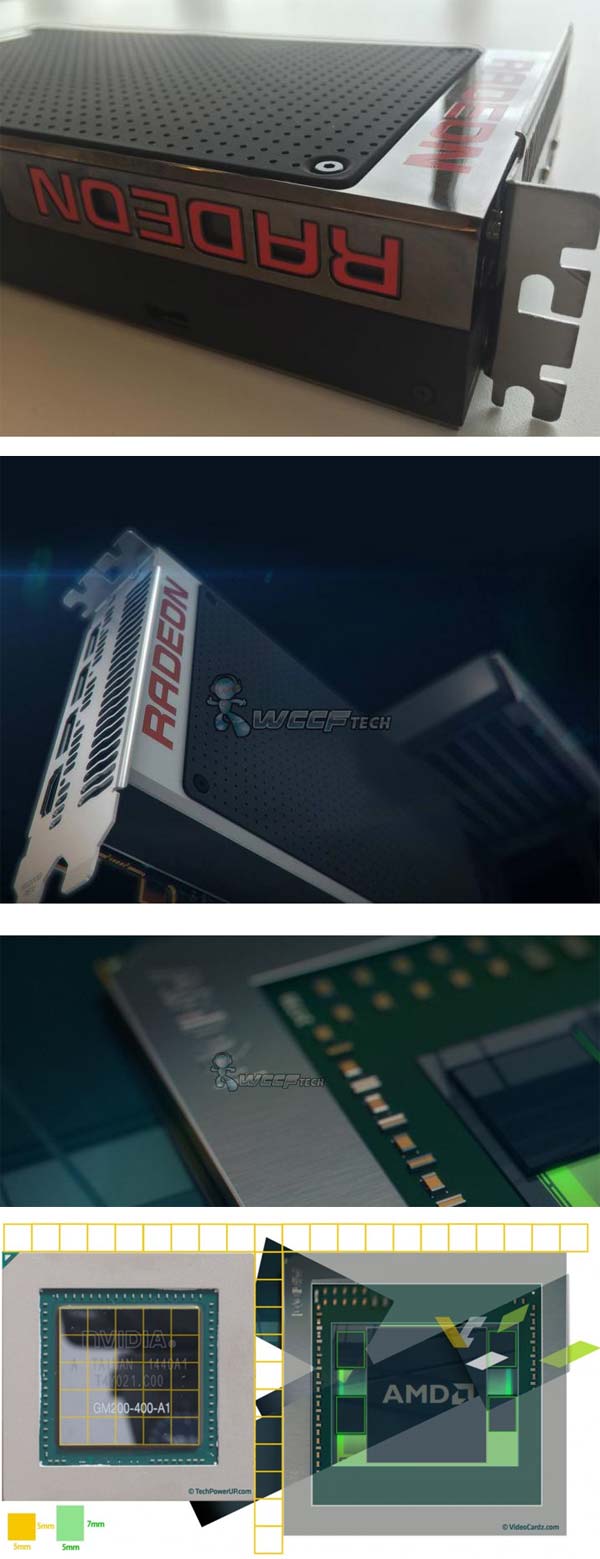 На фото выше видно, насколько крупнее графический чип Fiji используемого в последнем поколении видеокарта Nvidia чипа GM200-400-A1 (Maxwell). С нетерпением ждём релиза от AMD, карточка Radeon R9 390X (Fiji) обещает быть настоящим прорывом.