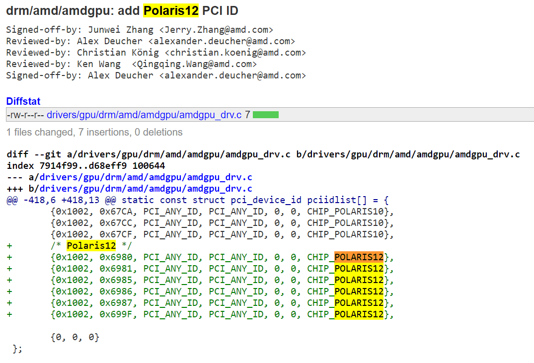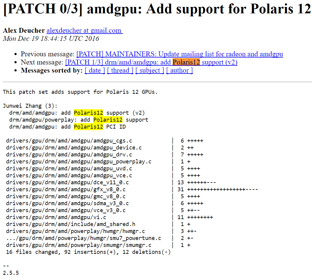 Оригинальную инфу подкинули пользователи Reddit, они нашли упоминание о Polaris 12 в патче для ОС Linux. Вот скриншоты: