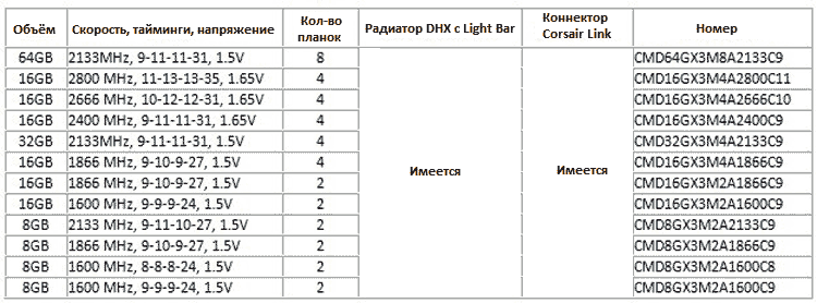 Итак, вот табличка по спецификациям новинок от Corsair, перевёл в ней, что смог, а остальное думаю, всем будет понятно: