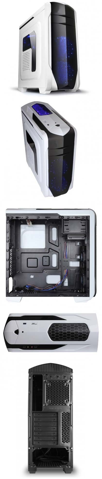 SPITZER 20 обладает размерами 450x480x190, весит 5.1КГ, изготовлен из 0.5мм SPCC стали и пластика, совместим с системными платами форм-факторов ATX и microATX, имеет семь слотов расширения, два внешних 5.25" отсека и один 3.5" под картридер или флоппи-дисковод, цвет корпуса по большей части белый.
