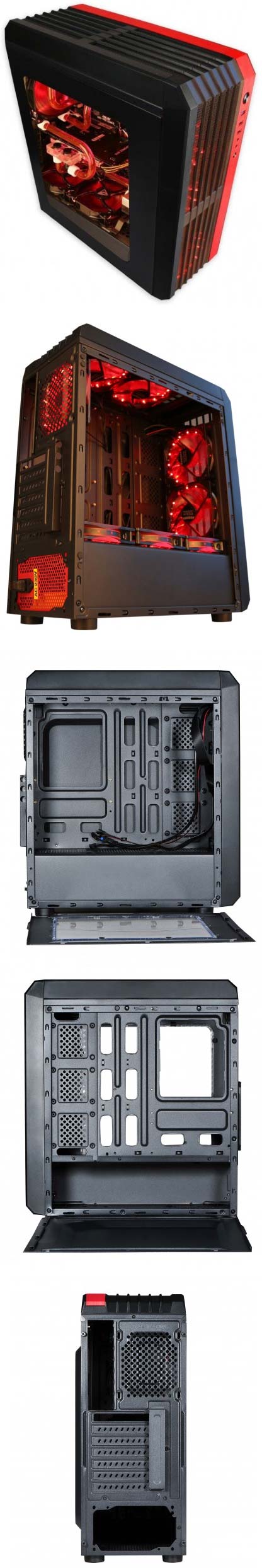 Изделие разработано для геймеров, производитель обеспечил в корпусе хорошую продуваемость, установлено три 120мм вентилятора с красной подсветкой - два с фронта и один с тыла. Новинка имеет сертификаты CE/EMC/RoHS/REACH, поставляется без блока питания, оснащена пылевыми фильтрами в нужных местах, имеет окошко в боковой стенке, порты USB и аудио-порты на панели ввода/вывода, предлагает до 25мм места для укладки кабелей, совместима с 360мм (и менее крупными) радиаторами СВО.
