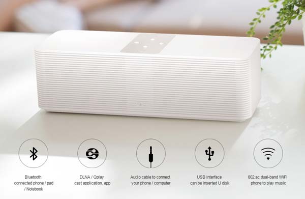 Xiaomi Internet Speaker является, своего рода, онлайн-радиоприёмником и аудиоплеером одновременно. Изделие имеет в основе SoC Amlogc 8726M3, обладает 8ГБ встроенной флеш памяти, поддерживает Dual-Band WiFi и Bluetooth 4.1, имеет порт USB 2.0, выдаёт звук из двух динамиков и двух 2.5" вуферов.