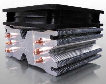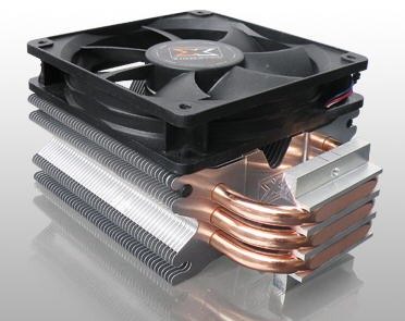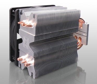Новинка обещает сочетать в себе высокую эффективность и скромную цену (забегая вперёд скажу, что её-то нам и не назовут). Также как и Loki, этот кулер использует H.D.T технологию отвода тепла от крышки процессора прямиком на теплотрубки (коих три и все 8мм) радиатора (который обдувается 120мм вентилятором, скорость вращения 800-1500 оборотов в минуту и шум от 16 до 24 децибел). На вентилятор установлено четыре белых светодиода, так что любители казуального моддинга порадуются этому пустячку.