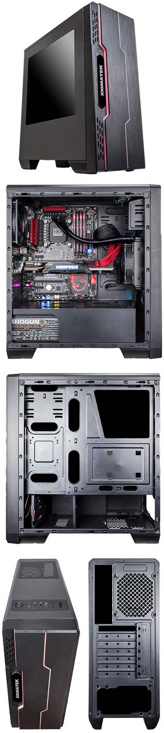 Корпус совместим с блоками питания PS/2 ATX или EPS, устройство не обладает 5.25" отсеками, но имеет три 3.5" и два 2.5" места для накопителей. На панели ввода/вывода имеются два USB 2.0, один USB 3.0, HD аудиовход/выход, контроллер подсветки и картридер.