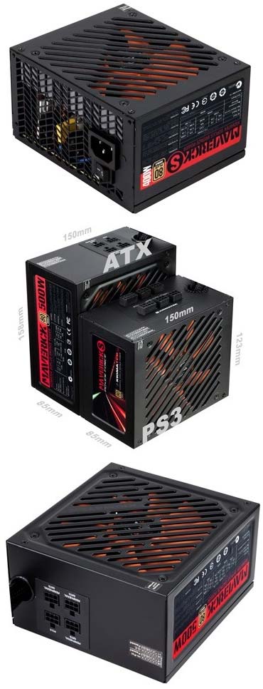 В линейку БП Maverick S вошли модели мощностью 400, 500 и 600 ватт. Все они обладают сертификатом эффективности 80 Plus Bronze, имеют размеры 123x150x85мм, работают с одной линией +12V, охлаждаются 120мм вентилятором, который работает на скорости до 1800 об/мин и шумит на уровне 28.72 дБ.