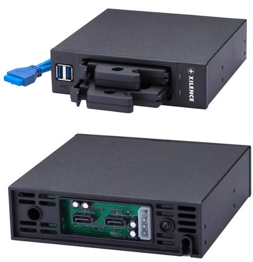 Плюс к этому функционалу разработчики добавили пару портов USB 3.0, которые подключаются к хедеру системной платы. Устройство обладает возможностью горячей замены накопителей, т.е. в любой момент помещённый в продукт Xilence винчестер/SSD можно отключить без вреда для последнего.