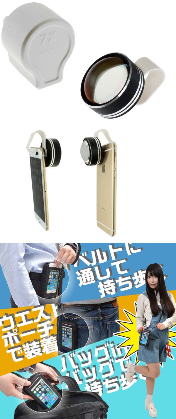 Новинка от Donya именуется DN-12739, это нечто вроде прицепного объектива для смартфонов и иже с ними. Устройство обеспечивает 7-кратный зум, совместимо со всеми умными телефонами, в том числе от Apple. Новинка имеет размеры 45x31мм, весит 78 граммов, стоит ~3000 йен (~1450 рублей).