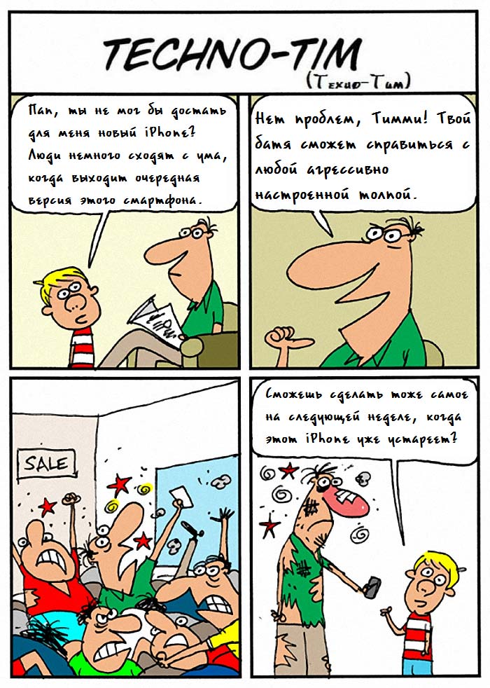 Уже на протяжении некоторого времени я просматриваю забавные одностраничные комиксы с сайта ТекКоннект, они на железячную тематику и довольно юморные. Я буду их публиковать по мере выхода там, на сайте. Конечно же на русском языке, чтобы смысл был понятен всем посетителям.