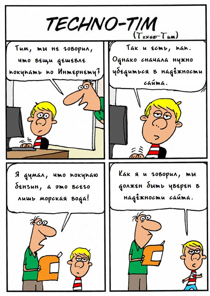 Уже на протяжении некоторого времени я просматриваю забавные одностраничные комиксы с сайта ТекКоннект, они на железячную тематику и довольно юморные. Я буду их публиковать по мере выхода там, на сайте. Конечно же на русском языке, чтобы смысл был понятен всем посетителям.