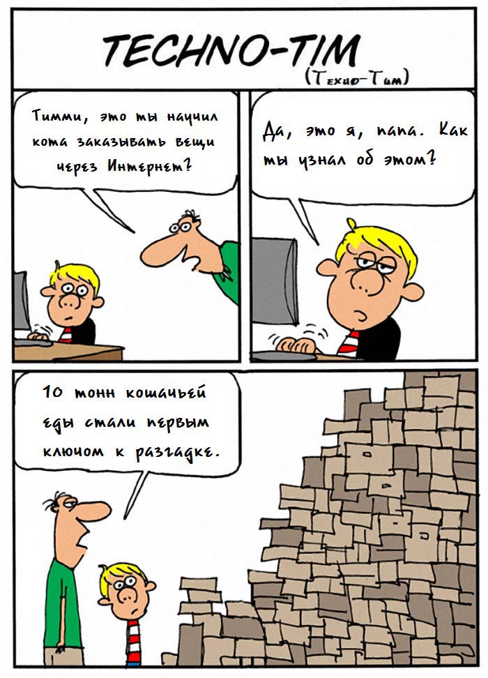 Уже на протяжении некоторого времени я просматриваю забавные одностраничные комиксы с сайта ТекКоннект, они на железячную тематику и довольно юморные. Я буду их публиковать по мере выхода там, на сайте. Конечно же на русском языке, чтобы смысл был понятен всем посетителям.