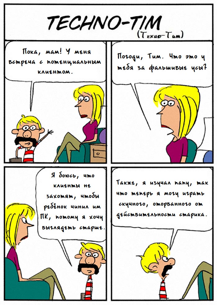 Уже на протяжении некоторого времени я просматриваю забавные одностраничные комиксы с сайта ТекКоннект, они на железячную тематику и довольно юморные. Я буду их публиковать по мере выхода там, на сайте. Конечно же на русском языке, чтобы смысл был понятен всем посетителям.