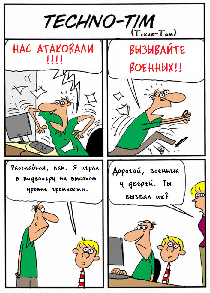 Уже на протяжении некоторого времени я просматриваю забавные одностраничные комиксы с сайта ТекКоннект, они на железячную тематику и довольно юморные. Я буду их публиковать по мере выхода там, на сайте. Конечно же на русском языке, чтобы смысл был понятен всем посетителям.