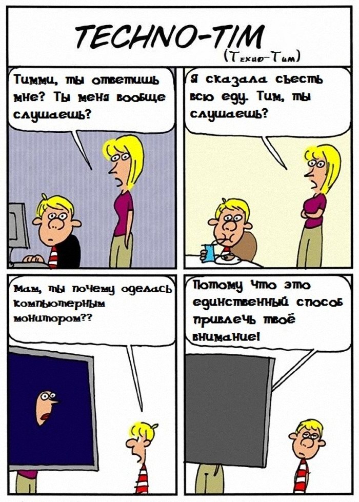 Уже на протяжении некоторого времени я просматриваю забавные одностраничные комиксы с сайта ТекКоннект, они на железячную тематику и довольно юморные. Я буду их публиковать по мере выхода там, на сайте. Конечно же на русском языке, чтобы смысл был понятен всем посетителям.