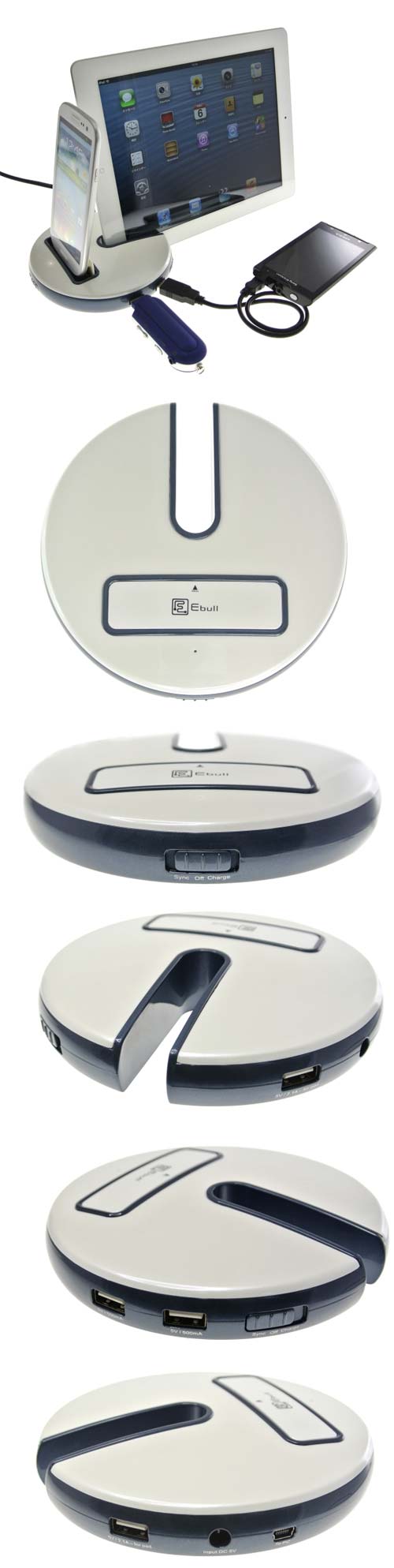 Имя продукта - DN-84145, он представляет собой изделие, предназначенное для зарядки смартфона Galaxy S3, также через новинку можно синхронизировать содержимое смартфона или подключенного планшета с ПК. Благодаря наличию двух портов USB (5В/500мА), можно заряжать другие устройства, которые имеют возможность пополнять свою батарею через этот интерфейс передачи данных. По форме девайс отдалённо напоминает Пакмена (или даже Millennium Falcon, корабль Хана Соло), благодаря такой конструкции, он может служить подставкой для планшета.