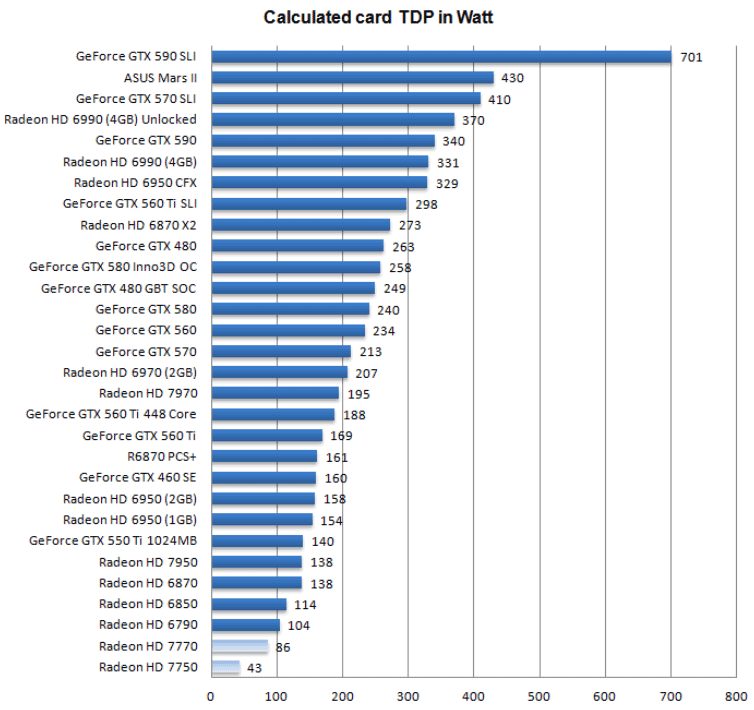 Для HD 7770, Гуру3Д рекомендуют обзавестись блоком питания мощностью не менее 450 ватт, а для двух таких видеокарт в CFX - 550 ваттным БП.