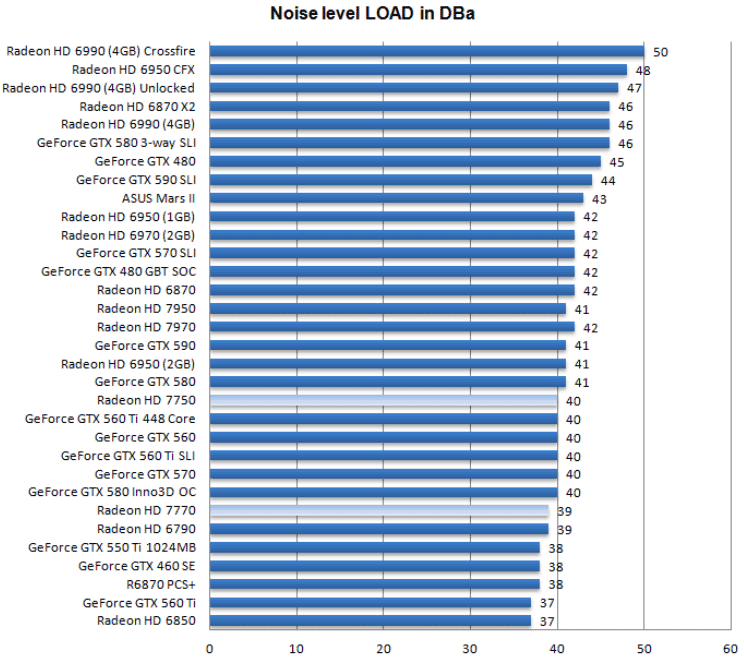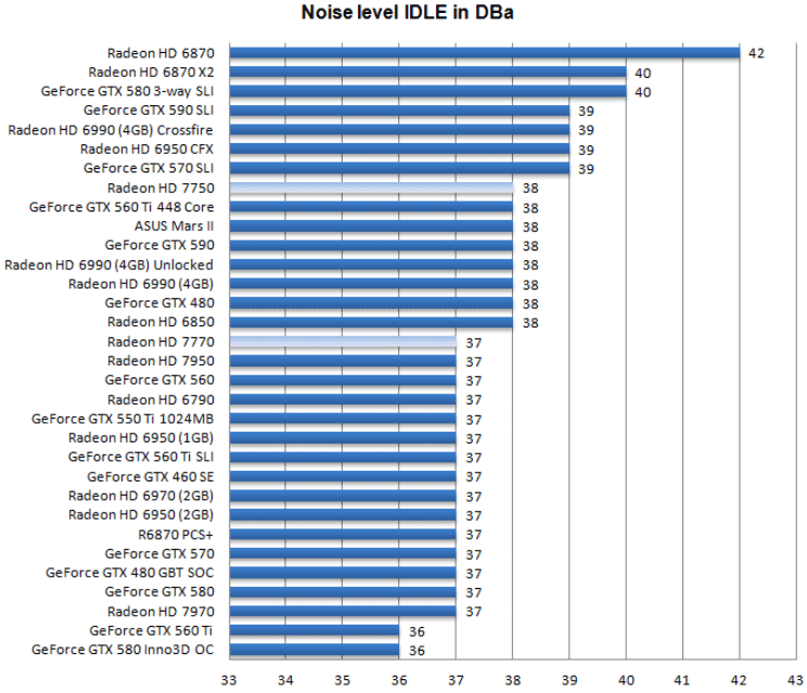 Уровень шума, издаваемый системами охлаждения видеокарт Radeon HD 7750 и HD 7770