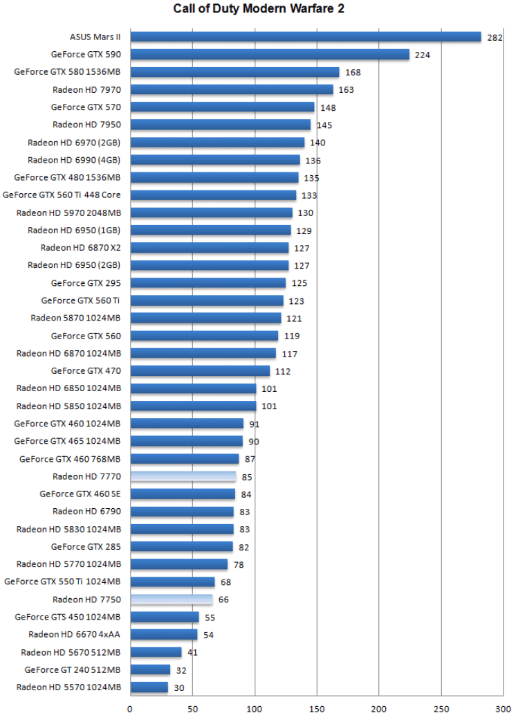HD 7750 несколько слабее своего братца по спецификациям - количество потоковых процессоров составляет 512, а TMU всего 32. Частота ядра также скромнее - 800МГц, а память работает на тех же 4500МГц. Объём GDDR5 памяти у обоих решений - 1ГБ. Рекомендуемая стоимость HD 7750 - 109 долларов США, а HD 7770 - $159.