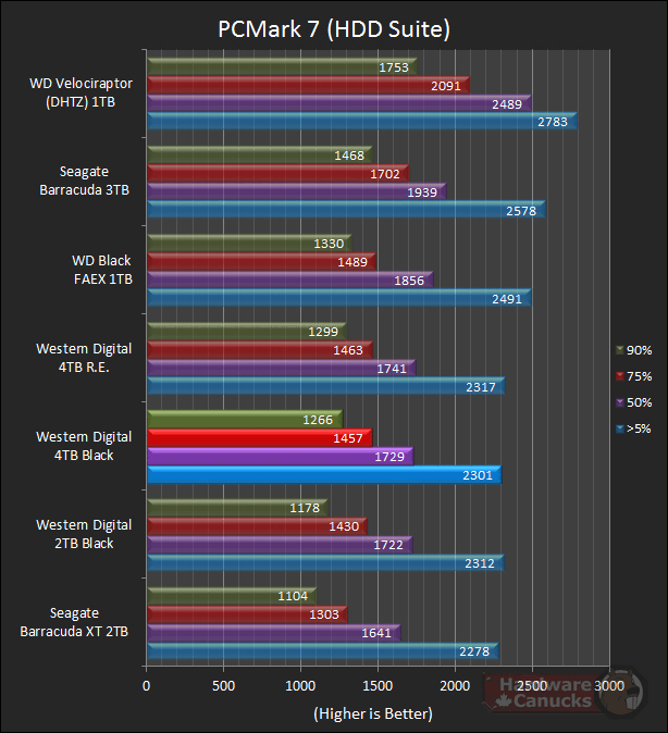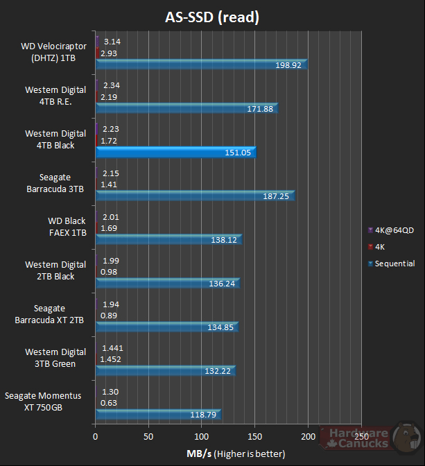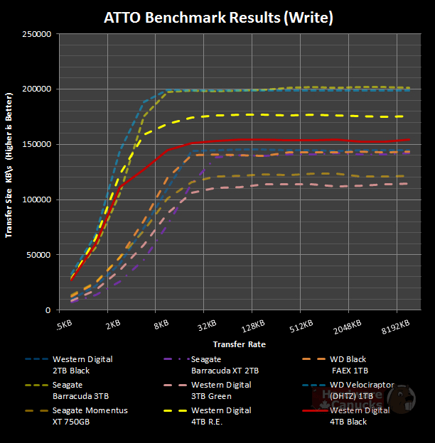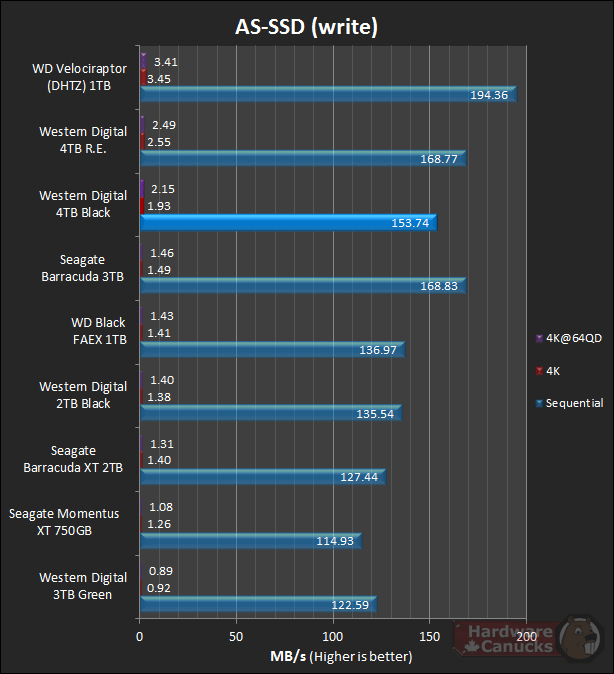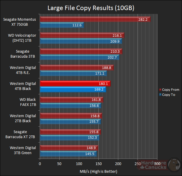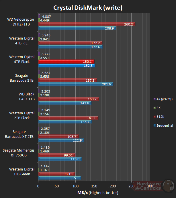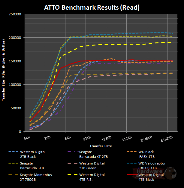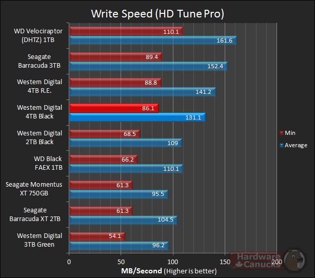 Несмотря на то, что 4ТБ WD Black не удалось догнать 4ТБ WD RE, изделие всё равно является одним из самых быстрых HDD на рынке. Более шустрое функционирование WD RE объясняется более громкой его работой, а WD Black больше оптимизирован для домашних ПК, потому работает тише (и медленнее). К слову, 3ТБ Seagate Barracuda оказался быстрее и WD RE и WD Black.