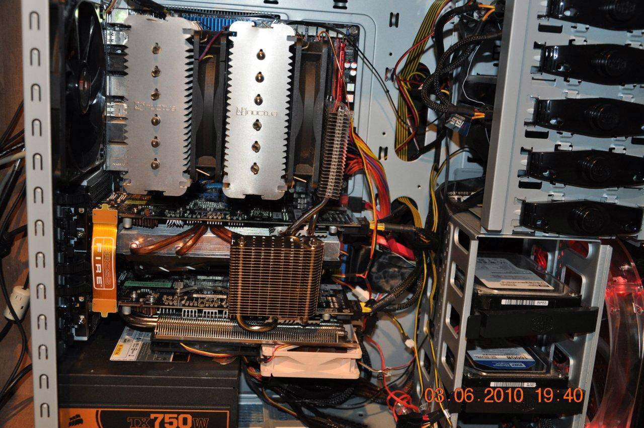 Поставив вторую карту, пока еще с рефернсной СО во второй слот я понял, что хочу я того или нет, но буду вынужден на Таракане (предназначенном на 2ю карту, т.к. на первой уже стоял Твин Турбо) первым вентилятором ставить все тот же 12мм (высота вентилятора) Scythe. Сделалось это в виду того, что стандартный вентилятор толщиной в 25мм не проходил по высоте над БП.