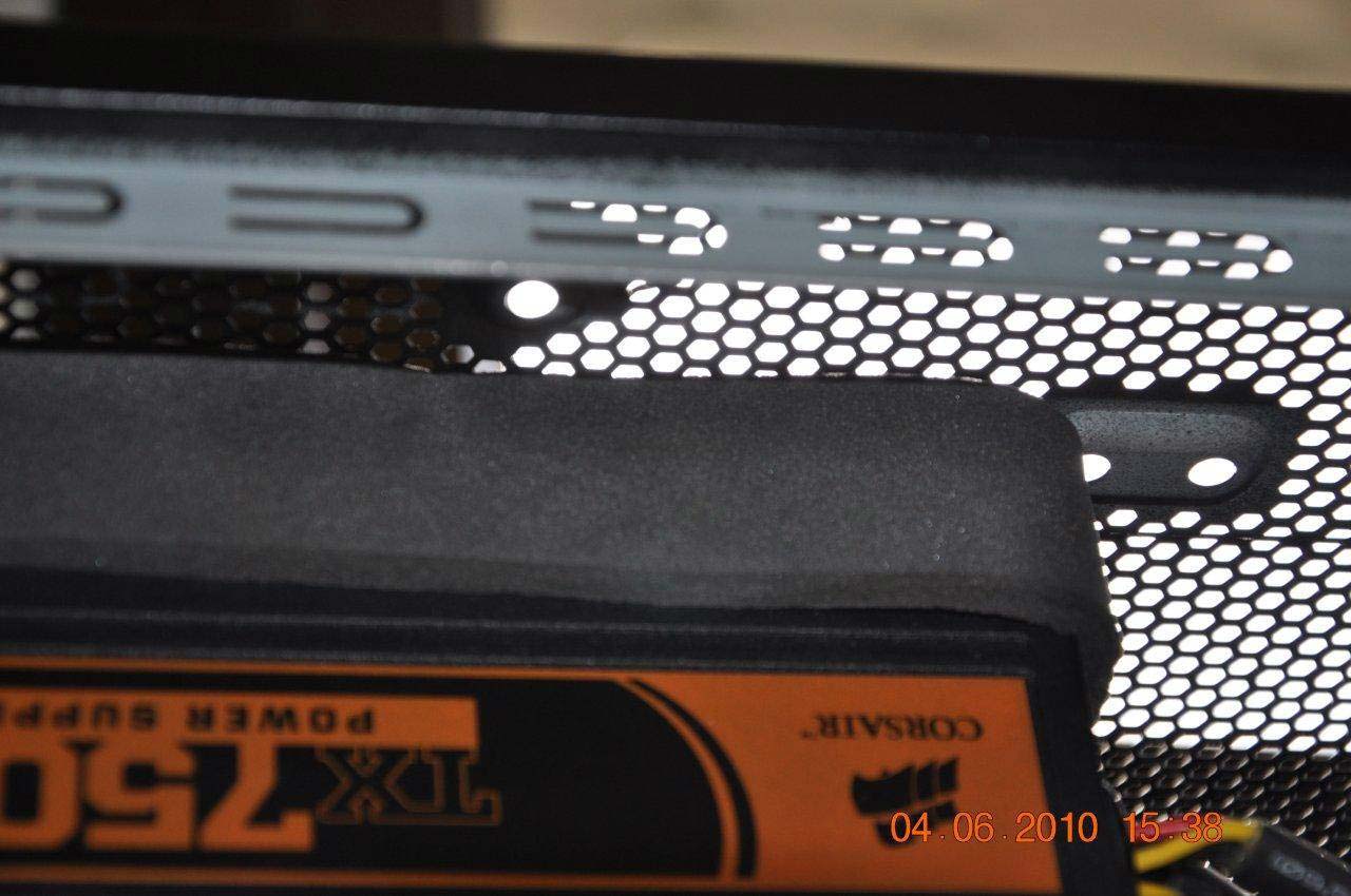 Но как предотвратить засос воздуха блоком питания из корпуса ? Нашлась дома полоска клейкой пористой резины из которой я сделал что-то вроде забора вокруг БП.