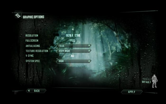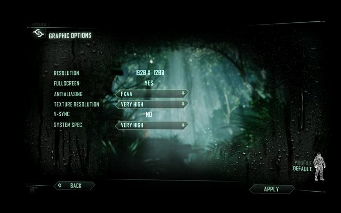 Если у игрока имеется лишь карта среднего уровня или ниже, не рекомендуется выставлять в настройках игры пресет выше Medium. Если есть карта высокого (но не ТОП) уровня, оптимальным будет выбор пресета High или Very High, но лишь с FXAA. Из видеокарт от AMD хорошо подойдёт под самые качественные настройки графики Radeon HD 7970/GHz Edition, а от Nvidia стоит обратить внимание на GeForce GTX 670/680. Если настройки High полностью устраивают, то хорошим выбором станут GeForce GTX 660 Ti и Radeon HD 7870.