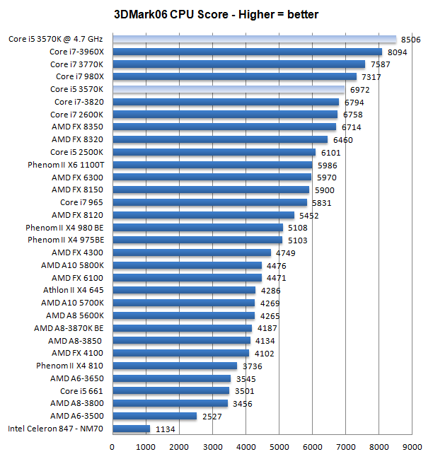 CPU Score подрос крайне ощутим. Процессор i5-3570K обошёл даже i7-2600K.
