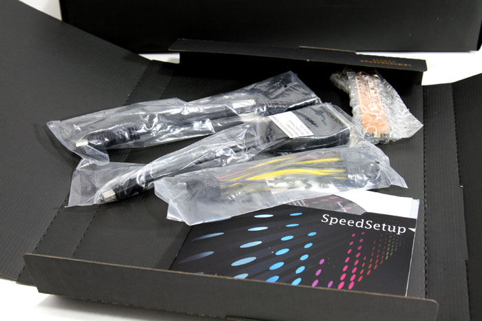 В комплекте с видеокартой идут различные переходники (какие точно - нам не рассказывают), диск с софтом и драйверами и CrossFireX мостик.