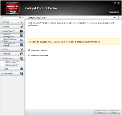 После установки соединительного мостика на обе видяшки (предварительно установленные в системник в соответствующие PCIe слоты), остаётся лишь в настройках драйвера Catalyst поставить галочку, активирующую режим CFX: