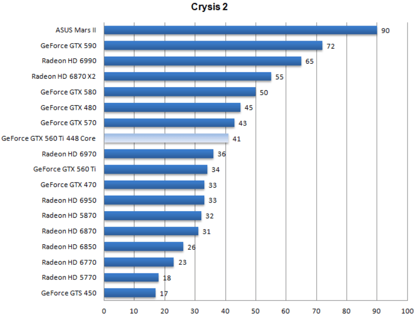 | Radeon HD 6850 | Radeon HD 6870 | GeForce GTX 560 | GeForce GTX 560 Ti | GeForce GTX 560 Ti 448 Cores | Radeon HD 6950 | GeForce GTX 570 | Radeon HD 6970 | GeForce GTX 580 | |