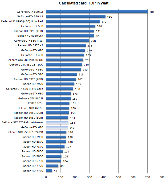 Поглядим, насколько хорошо / плохо выглядит Palit GeForce GTX 670 JetStream на фоне прочих карт в плане энергопотребления: