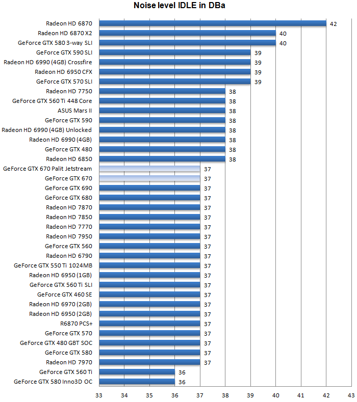 Уровень шума, издаваемый системой охлаждения видеокарты Palit GeForce GTX 670 JetStream