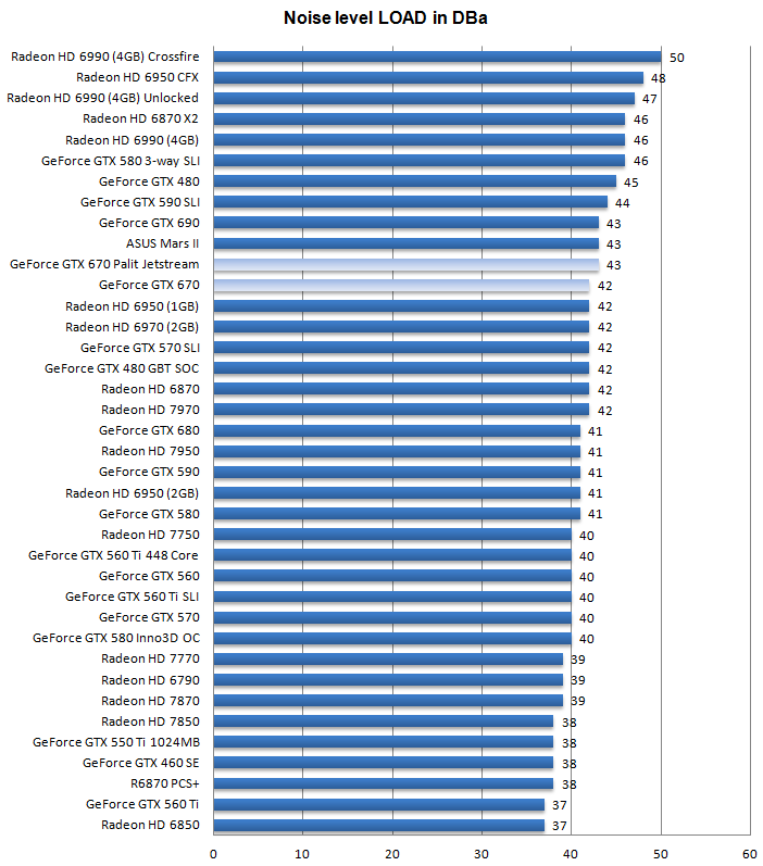 А вот в нагрузке дела далеко не так хороши, как у GTX 680 с JetStream и уж точно не так прекрасны, как у рассмотренной вчера ASUS GeForce GTX 670 DirectCU II TOP.