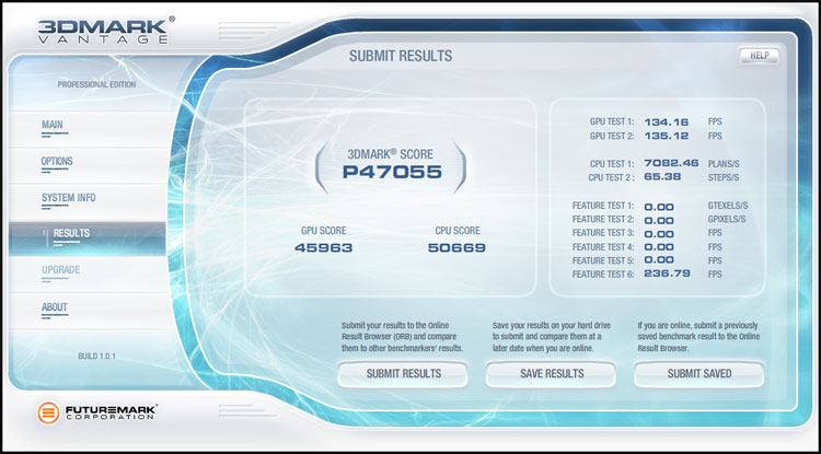 Далее приведены результаты в 3DMark Vantage, по той же схеме - сначала тест проводился на не разогнанном процессоре, а затем на нём же, но уже работающем на тактовой частоте в 5ГГц:
