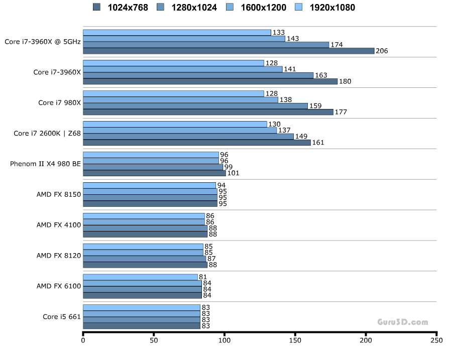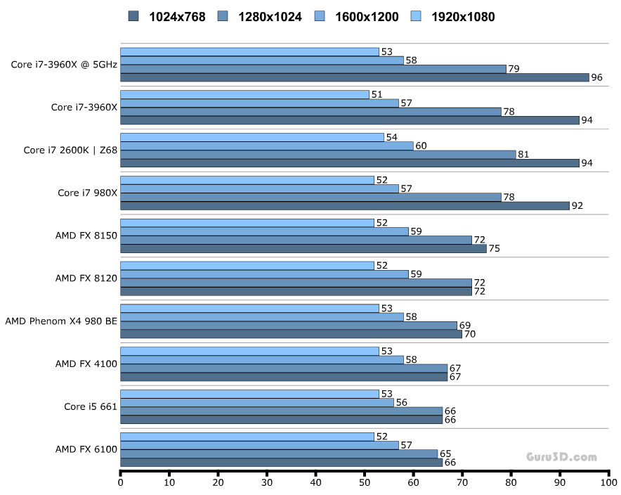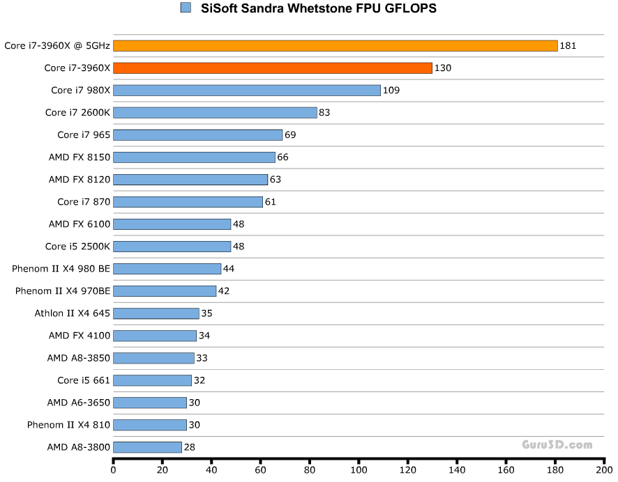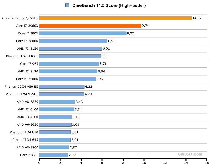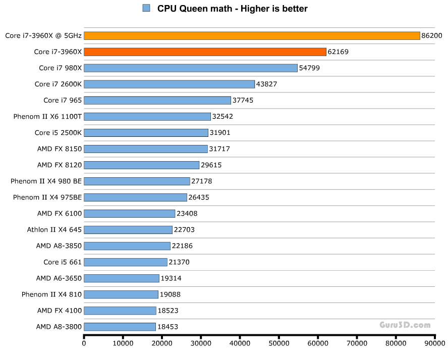 Комментариев к тестам я не привожу, однако стоит отметить, что на графиках даны результаты выступления процессора Core i7-3960X как в номинальном режиме работы (тёмно-оранжевая линия), так и в разгоне (светло-оранжевая).