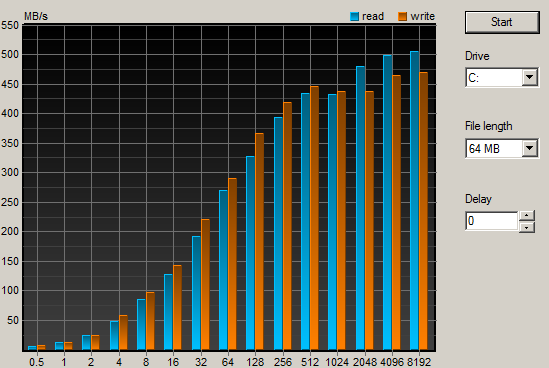 Соответственно, нижний график показывает скорость чтения с устройства по SATA 6Гб/с.