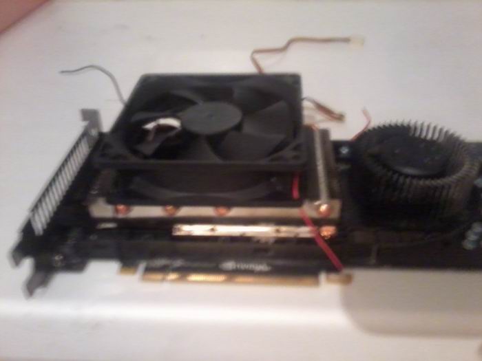 как видите даже Суньгфаньг смог сравится с картой в бублике, но надо заметить что комнатная температура была 22 градуса. При температуре в 29 градусов температура уходила до 96 градусов. Также надо отметить что у этоого китайского ширпотреба очень слабый воздушный поток даже при 2000об\минуту, НО он очень тихий и сопоставим с турбиной карты на скорости 42%! И с этим Суньгфаньгом карта проработала у меня 4 месяца. Но для хозяина карты я всётаки взял Zalman ZM F2 и был удивлён тем что залман при 29 градусах в комнате охладил карту в бублике до 85 градусов! и это при том же разгоне.