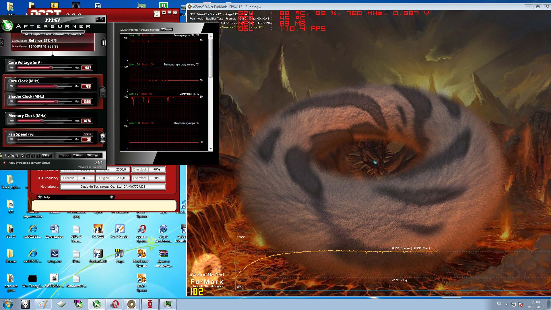 6) В MSI AB выставьте ручное управлениетурбиной и выставьте обороты на минимум. Не рекомендую совсем отключать турбину, т. к. она при достижение 92 градусов начинает реветь, и будет выступать вроде сигнализации